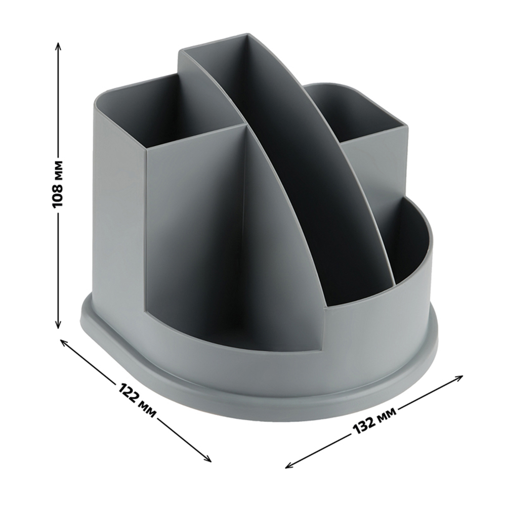 Выполнена в универсальном сером цвете, легко вписывается в любой офисный или учебный интерьер. Подставка позволяет удобно разместить ручки, карандаши, маркеры и другие мелкие канцелярские принадлежности, помогая поддерживать порядок на столе. Прочная конструкция обеспечивает устойчивость и долгий срок службы.