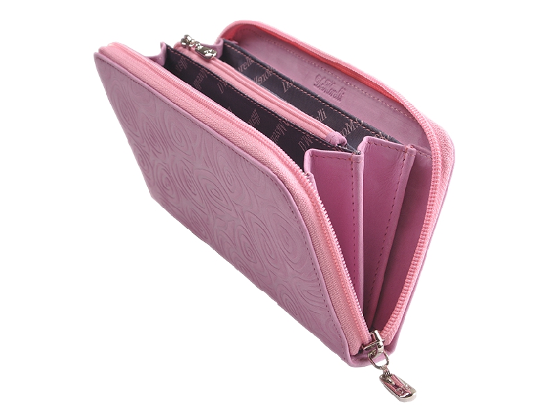 Портмоне женское розового цвета "Тирамо-2" выполнено из натуральной кожи розового цвета, закрывается на молнию. Внутренний функционал: 2 вместительных отделения для купюр, 1 карман на молнии для монеток и разных мелочей, на другой части портмоне много удобных карманов для пластиковых карточек. Идеально подойдет в качестве подарока как для себя, так и близким и родным. Размер: 19,5×10 см.