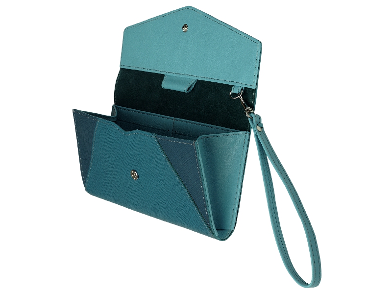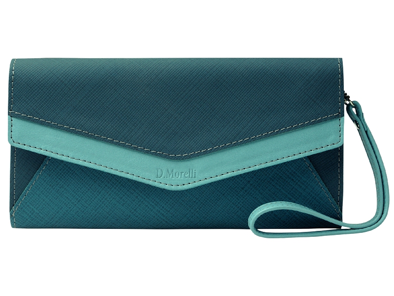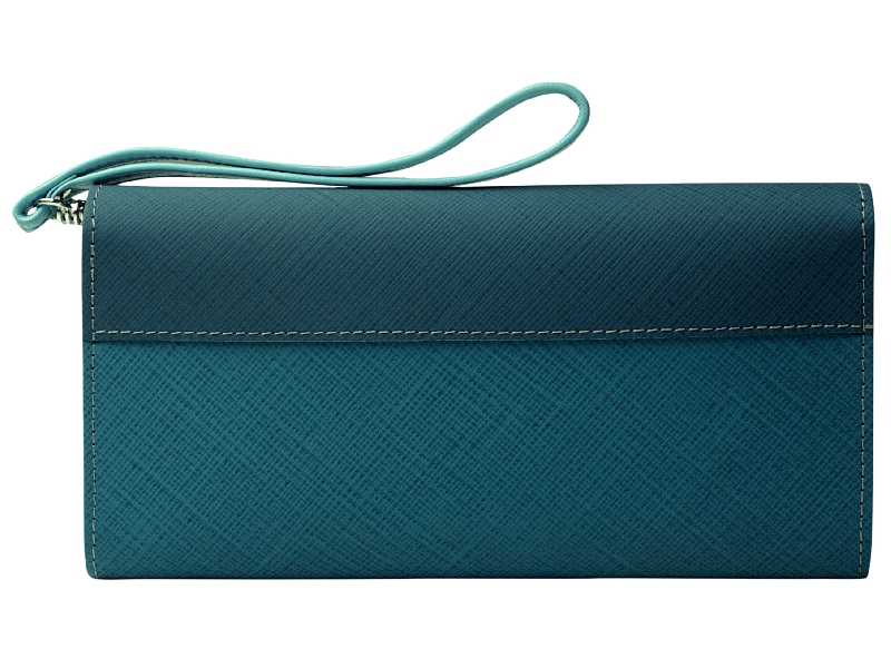 Женское портмоне "Верона" с отстегивающимся хлястиком. Выполнено из натуральных кож Софиано цвета морской волны и бирюзы. Закрывается на клапан с кнопкой. Внутренний функционал: 3 отделения, монетник на молнии, отделение для карт, держатель для ручки. Может быть использовано как клатч. Идеально подойдет в качестве  подарока как для себя, так и  близким и родным.