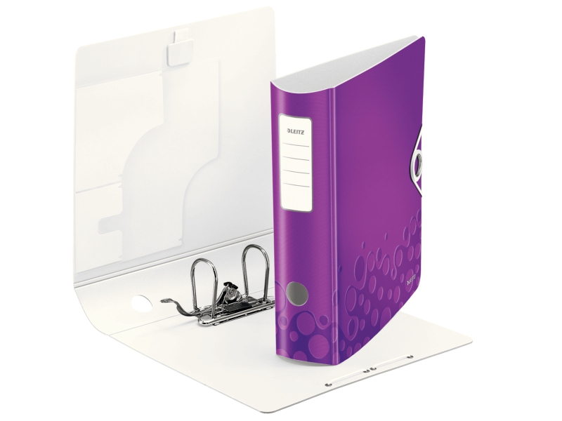 Папка-регистратор А4 "Active WOW" от компании Leitz фиолетового цвета. Папка изготовлена из ламинированного, прочного картона с геометрическими стильными узорами, которые способны подчеркнуть Вашу индивидуальность. Прочный и надёжный арочный механизм с лёгкостью открывается на 180 градусов. Формат папки - А4, ширина корешка - 80 мм. Папка-регистратор свободно вмещает в себя  до 600 листов документации. В папке предусмотрены внутренние карманы для хранения визитных карточек, CD дисков, либо для отдельных документов. На корешке папки есть прозрачный карман со сменным информационным ярлыком для маркировки. Также на корешке для удобного захвата расположено кольцевое отверстие-захват.
