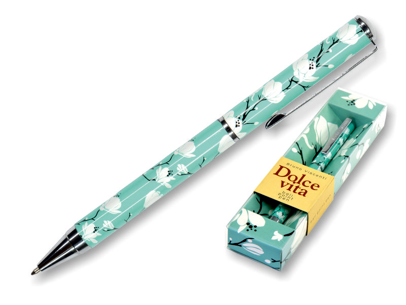 Ручка шариковая автоматическая "DOLCE VITA. Камелии" от торговой марки Bruno Visconti. Изящная, стильная подарочная ручка – это элегантное украшение рабочего стола. Яркий дизайн металлического корпуса привлечет к себе внимание и не оставит никого равнодушным. Прочность корпуса и нажимной механизм подачи стержня обеспечивают удобство в эксплуатации и долгий срок службы шариковой автоматической ручки. Синие пигментные чернила DOKUMENTAL (Германия) и пишущий узел Premec (Швейцария) – гарантируют качественное и мягкое письмо. Ручка в ярком подарочном футляре - отличный вариант для маленького презента прекрасной половине, коллеге, партнеру.