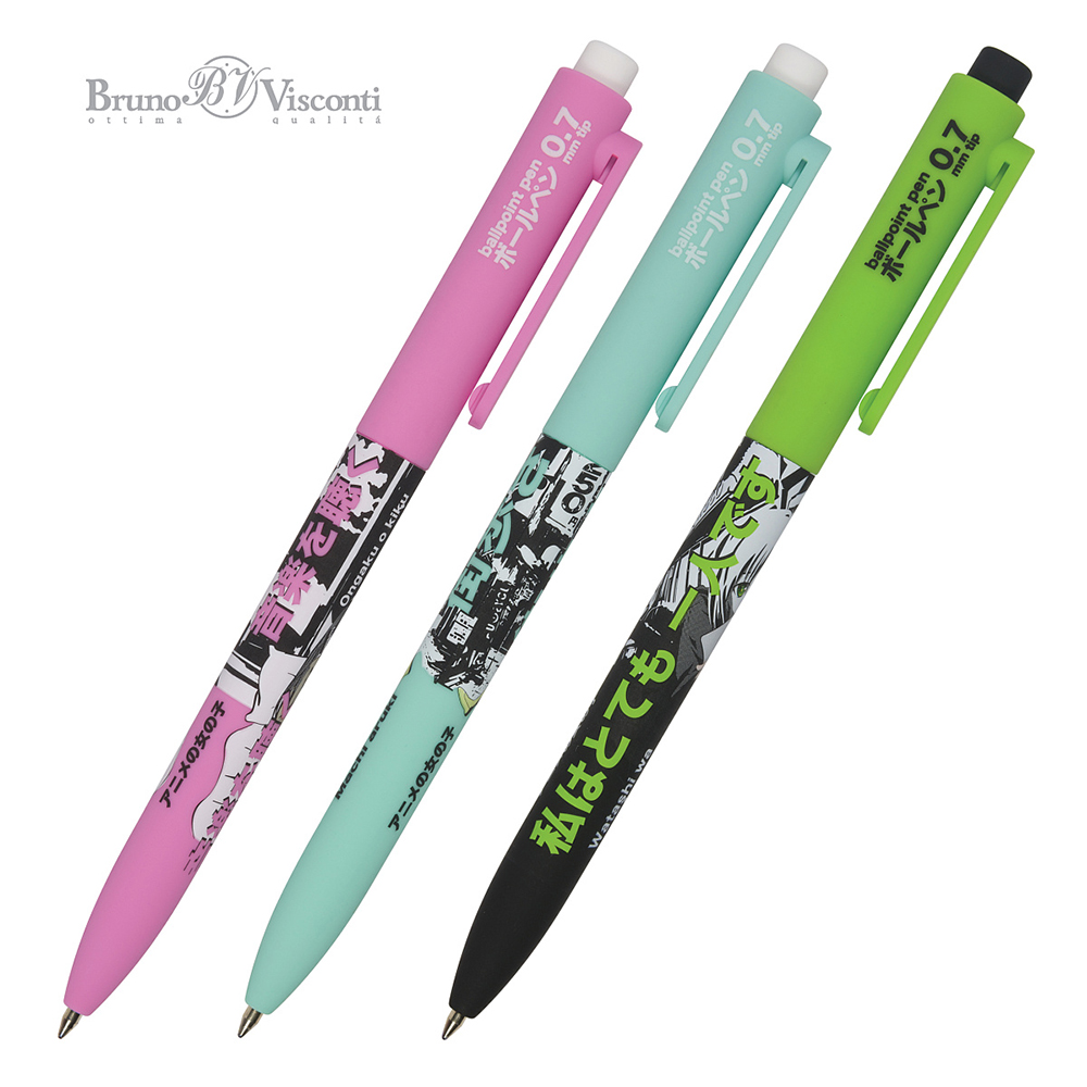 Шариковая ручка "FunClick. Manga Anime. City" с синим стержнем от бренда Bruno Visconti. тактильно приятная, имеющая надежный и простой нажимной механизм с бесперебойной подачей стержня. Неизменный помощник в учебе и работе.