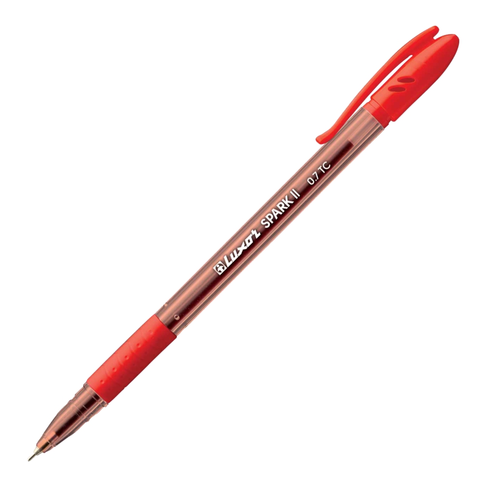 Ручка шариковая "Luxor Spark II" с красным стерженем, толщиной линии письма 0.5мм. Круглая  форма обеспечивает комфортное письмо, тонированный корпус в цвет чернил. Предназначена для каждодневного использования. Оснащена ребристым грипом и пластиковым вентилируемым колпачком с клипом. Клип позволяет прикрепить ручку к тетрадке, ежедневнику, либо к карману. Обеспечивает комфортное и мягкое письмо.
