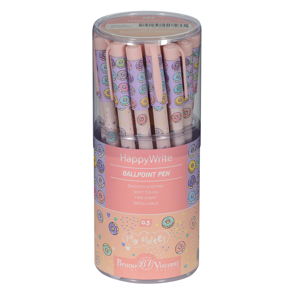 Ручка шариковая - синий стержень 0.5мм. "HappyWrite. My Sweet. Пончики" (Bruno Visconti)