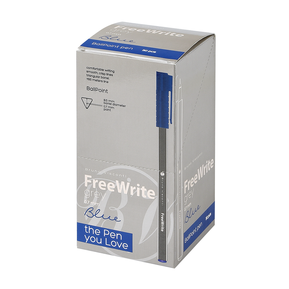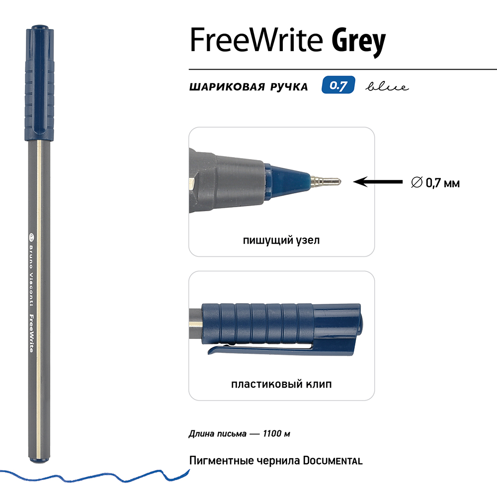 Ручка шариковая - синий стержень 0.7мм. "FreeWrite Grey" (Bruno Visconti)