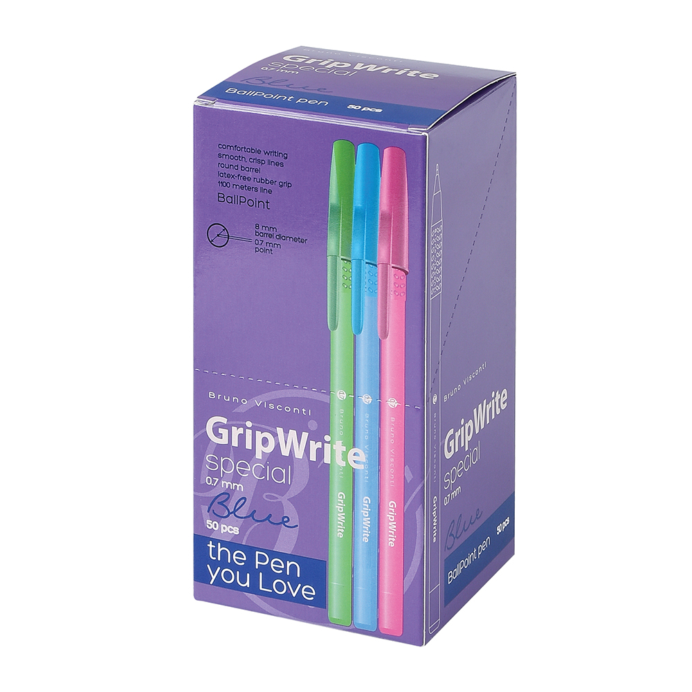 Ручка шариковая - синий стержень 0.7мм. "GripWrite Special" ассорти (Bruno Visconti)