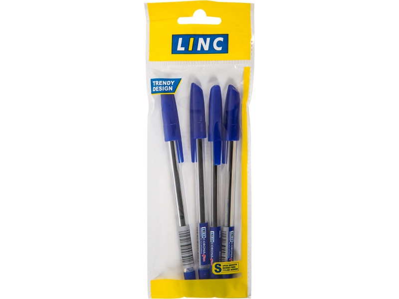 Ручки шариковые в наборе - 1цв.4шт. 0.7мм. синий стержень "Corona Plus" (LINC)