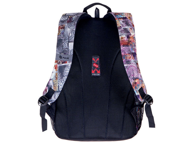 Рюкзак ортопедический д/девочек 48х30х25 см. черный с принтом "SPIN ORNAMENT" (PULSE)
