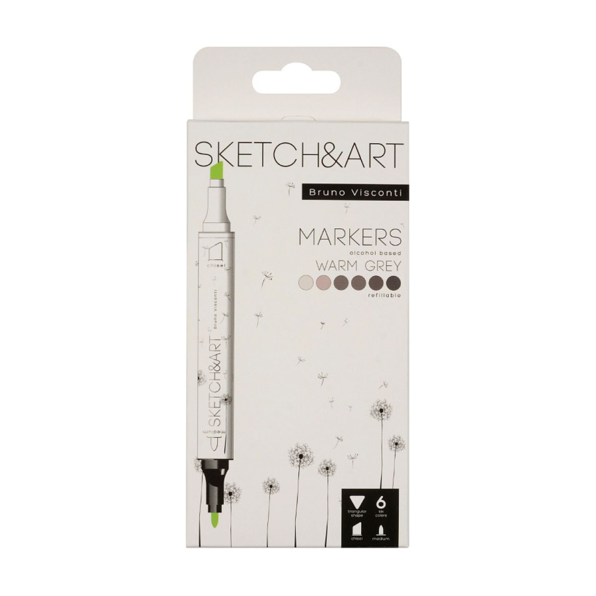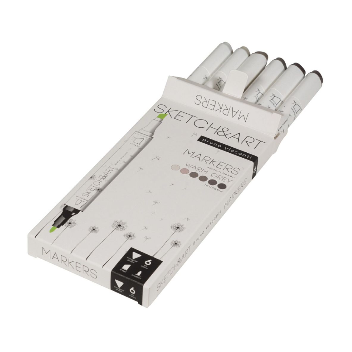 Скетчмаркеры в наборе - 6цв. "SKETCH&ART. ТЕПЛЫЕ СЕРЫЕ ЦВЕТА" двусторонние в картонной упаковке (BrunoVisconti)