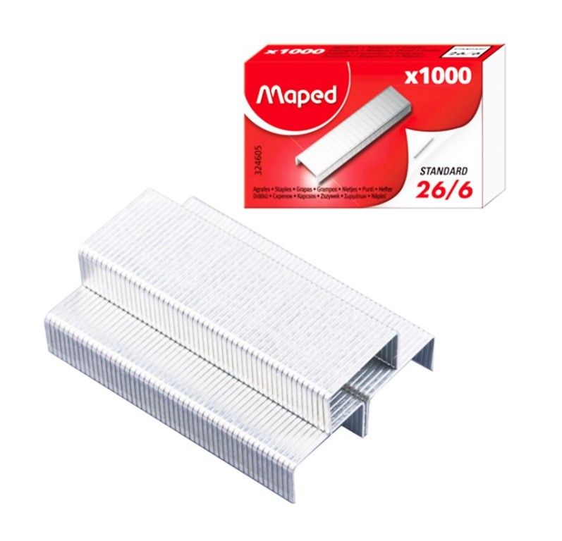 Скобы для степлера от французского бренда Maped соответствуют стандартам качества. Они сделаны из прочного материала - нержавеющая сталь. Края каждой скобы заострены, что обеспечивает четкое и быстрое прокалывание. Размер - этой модели соответствует №26/6, а это значит, что одна металлическая скоба способна к прокалыванию 25-30 листов. В упаковке содержится тысяча штук. Цвет классический - металлический, он незаметен на бумаге и не привлекает внимание.