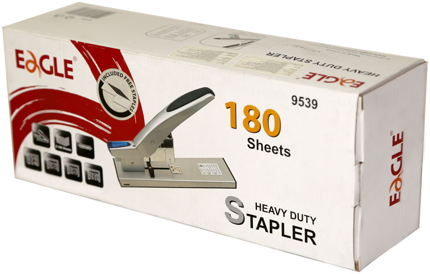 Степлер - необходимый аксессуар в любом офисе. Степлер от китайского бренда EAGLE отличается высокой мощностью - сшивает от двух до ста восьмидесяти листов. Подойдет для типографий, больших организаций. Корпус и рабочий механизм сделаны их прочного металла, что гарантирует долгий срок службы. Рычаг (ручка) декорированы пластиковыми вставками, которые обеспечивают дополнительную эргономичность - рука не соскальзывает при использовании. Нижняя часть отделана пластиком, который исключает повреждение поверхности стола. Изделие массивное, устойчивое. Дизайн гениален своей простотой: прямые линии корпуса, обтекаемая форма ручки. Цветовое оформление выполнено в серой гамме.