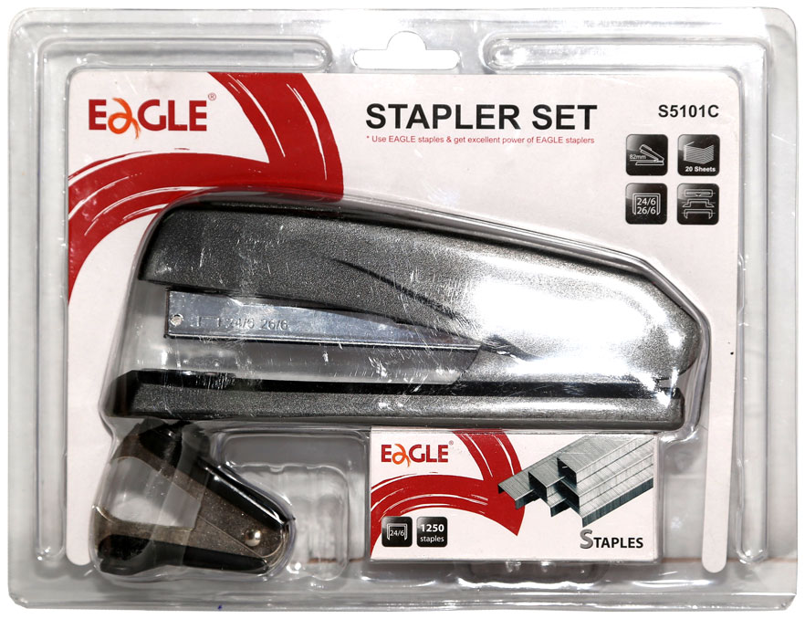 Степлер-набор (степлер №24/6.26/6 + скобы 1250шт. + антистеплер) в блистере (EAGLE)