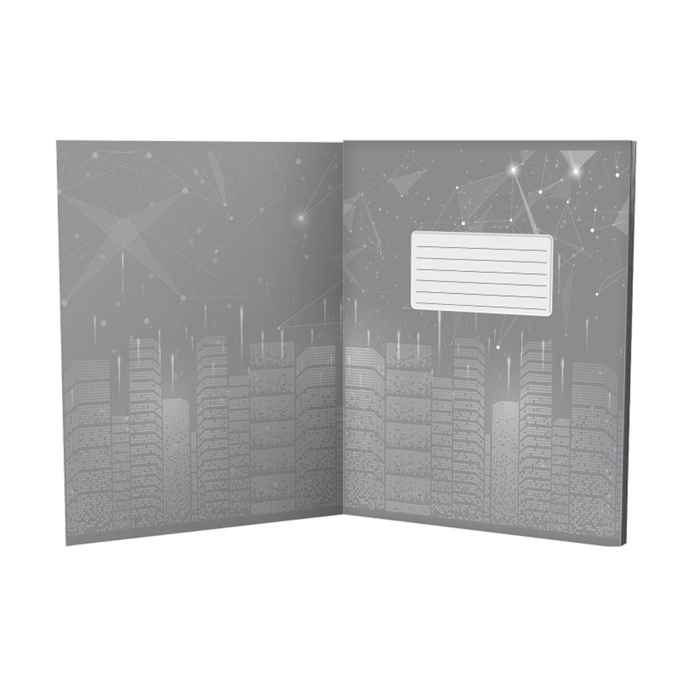 Обложка серии «Sev Silver City Sev» оформлена современным городским дизайном с серебристыми элементами, придавая тетради стильный и привлекательный вид. Плотный картон надежно защищает листы от замятия и повреждений, а скрепление на скобе обеспечивает удобное открытие и надежное удержание страниц.