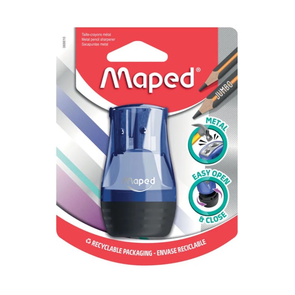 Точилка с двумя отверстиями «Tonic Metal» от бренда Maped — надежный и практичный инструмент для заточки карандашей разного диаметра.