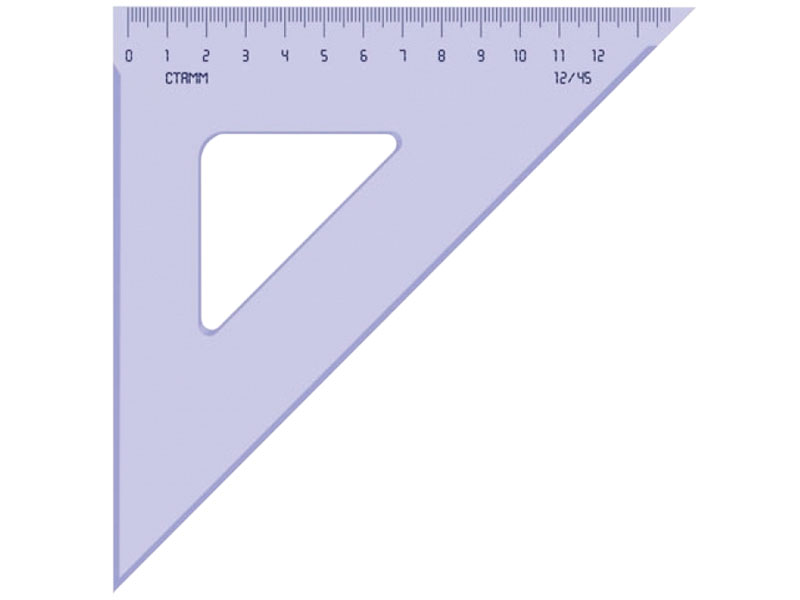 Треугольник пластиковый сделан из прочного пластика, который соответствует всем стандартам качества. Длина изделия - 12 см, угол наклона - 45⁰, одна шкала делений.